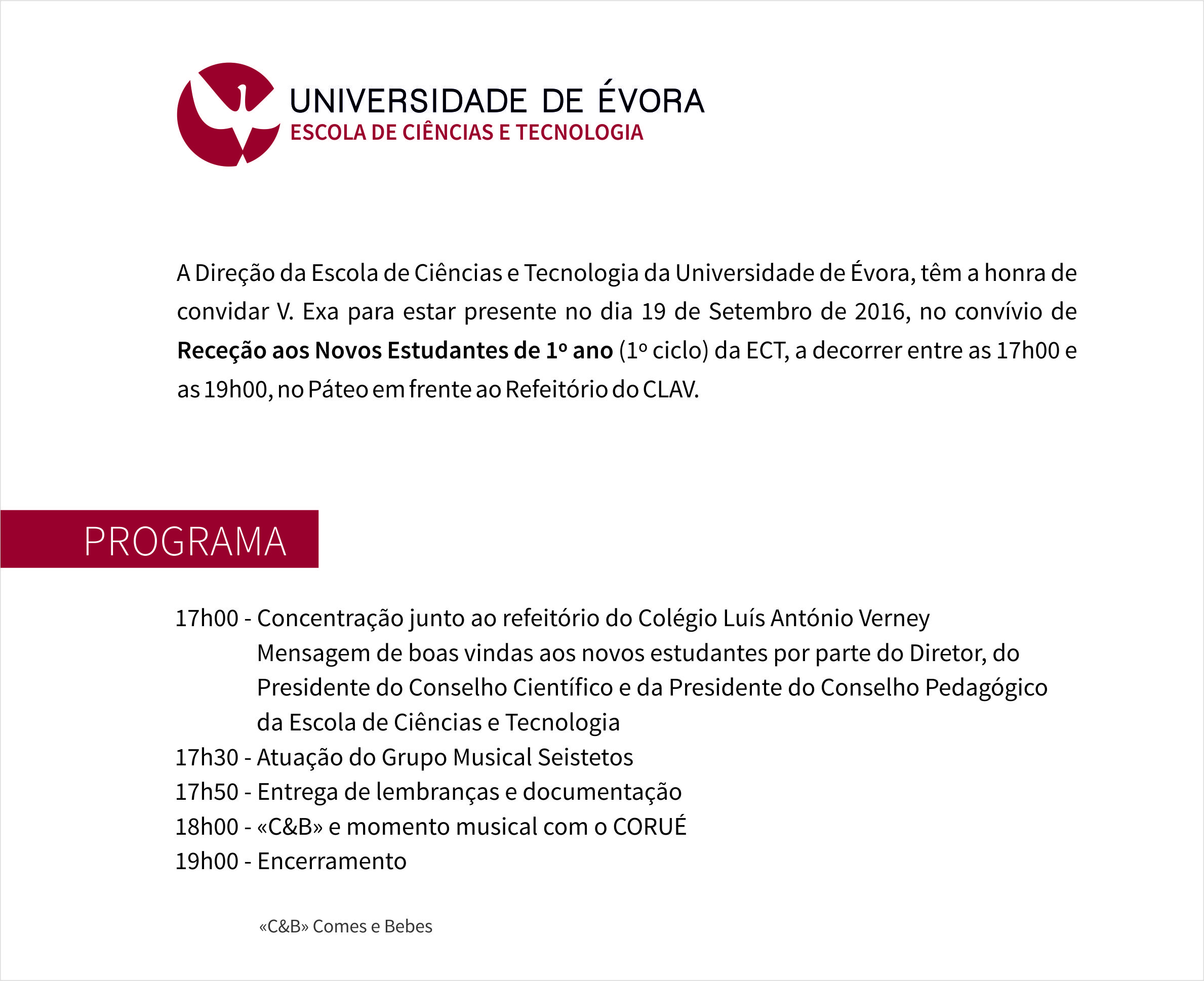 A Receção aos Novos Estudantes tem lugar no dia 19 de Setembro pelas 17:00 no Colegio Luis António Verney