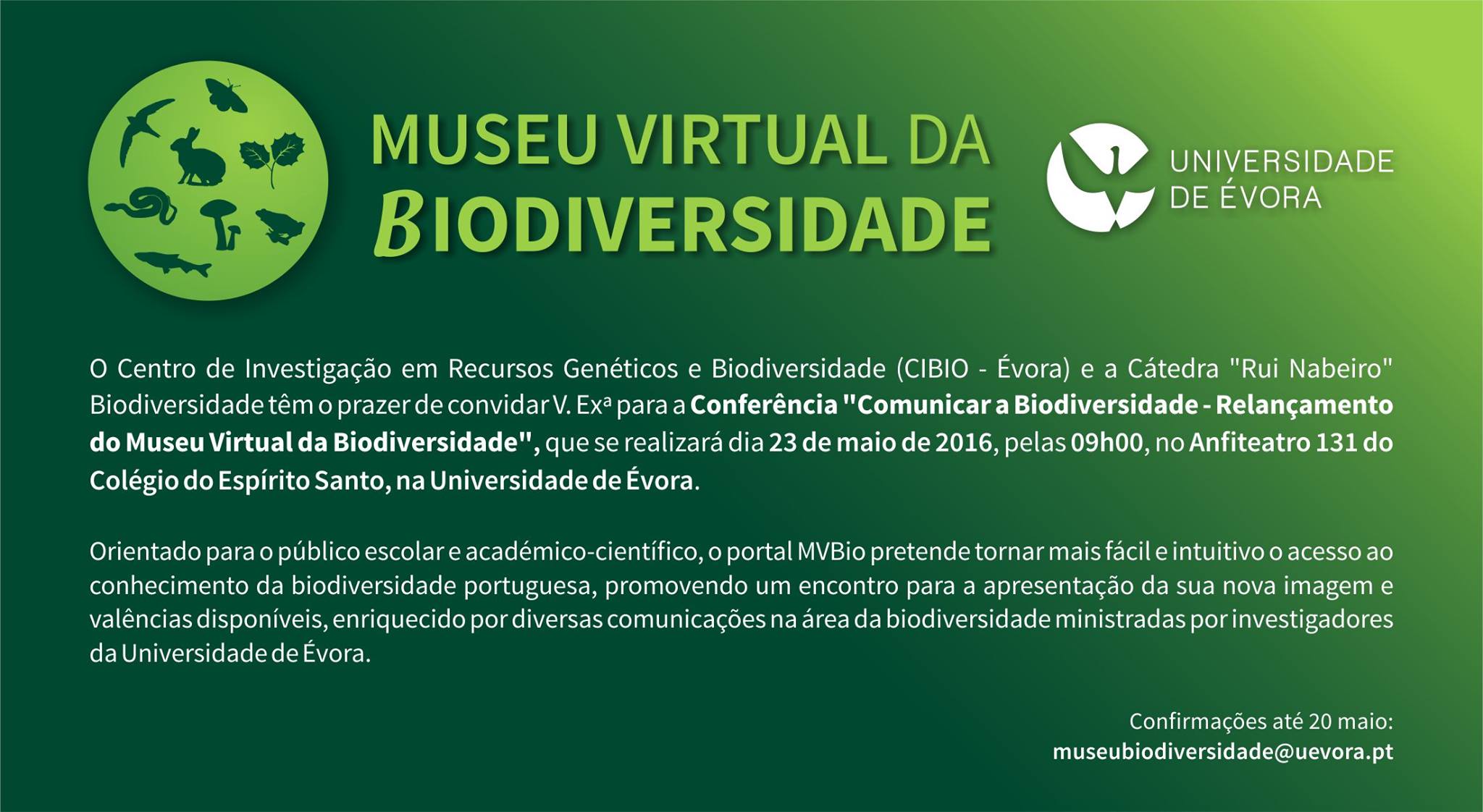 O Centro de Investigação em Recursos Genáticos e Biodiversidade (CIBIO - Évora) e a Cátedra "Rui Nabeiro" organizam a Conferência "Comunicar a Biodiversidade - Relançamento do Museu Virtual da Biodiversidade".